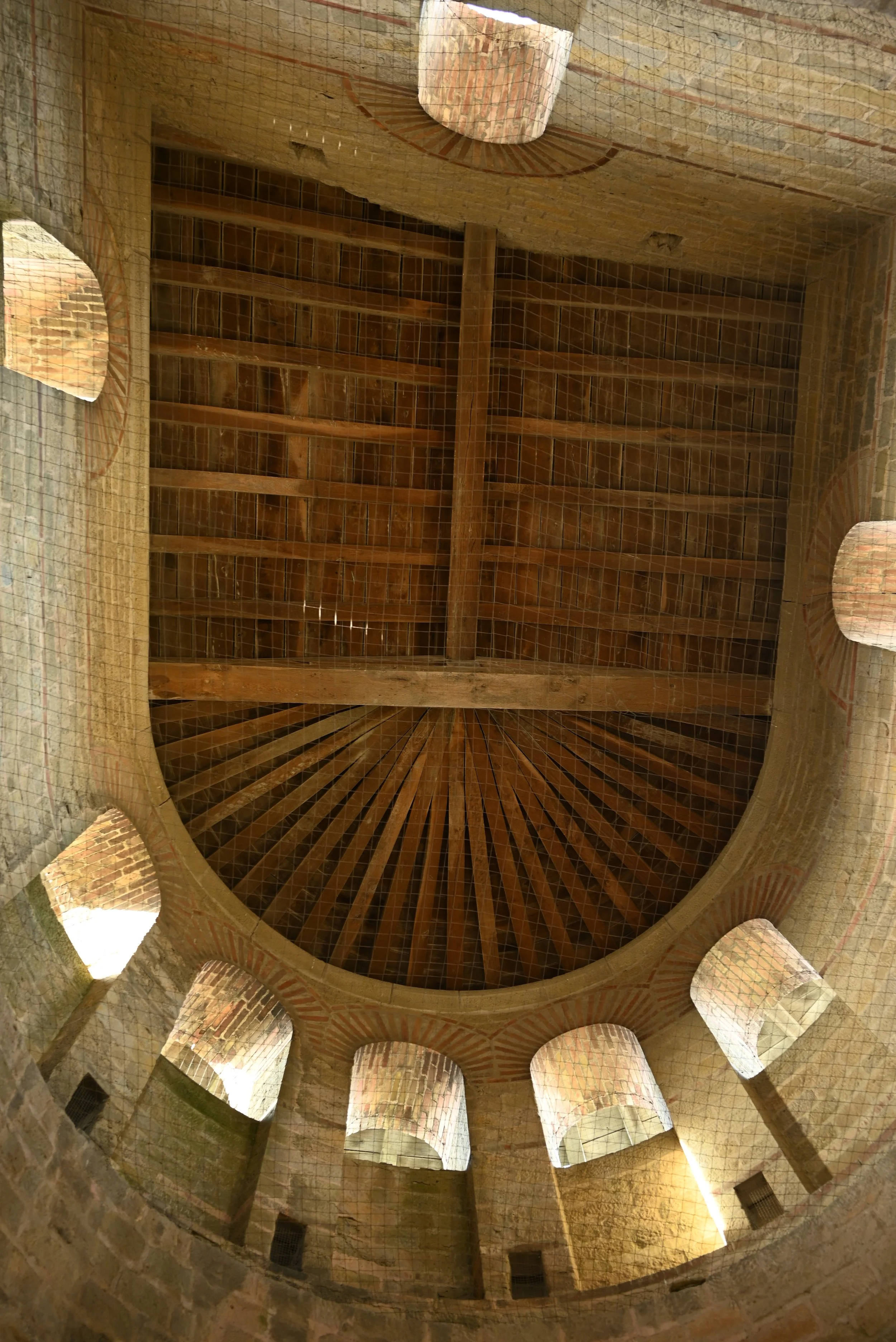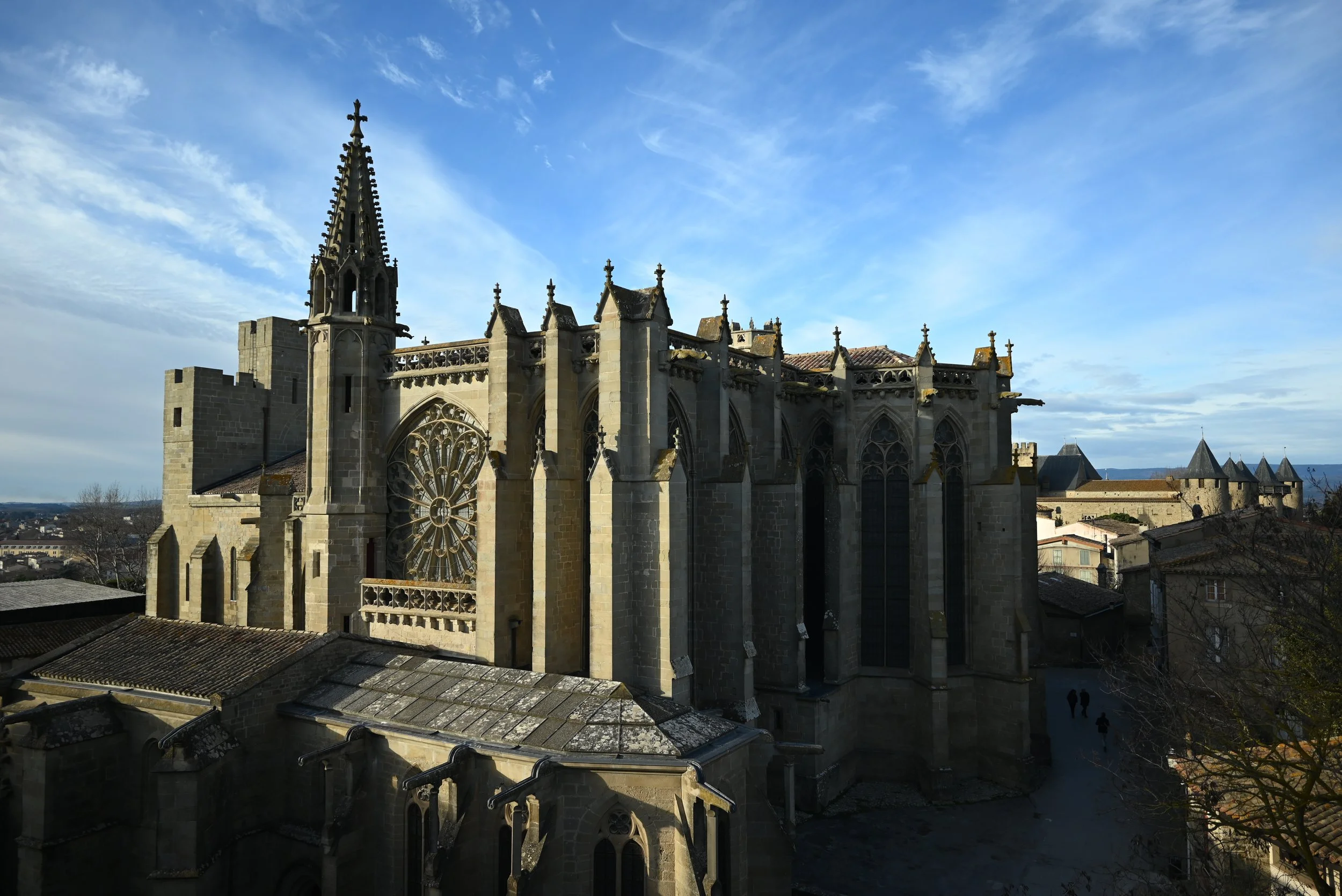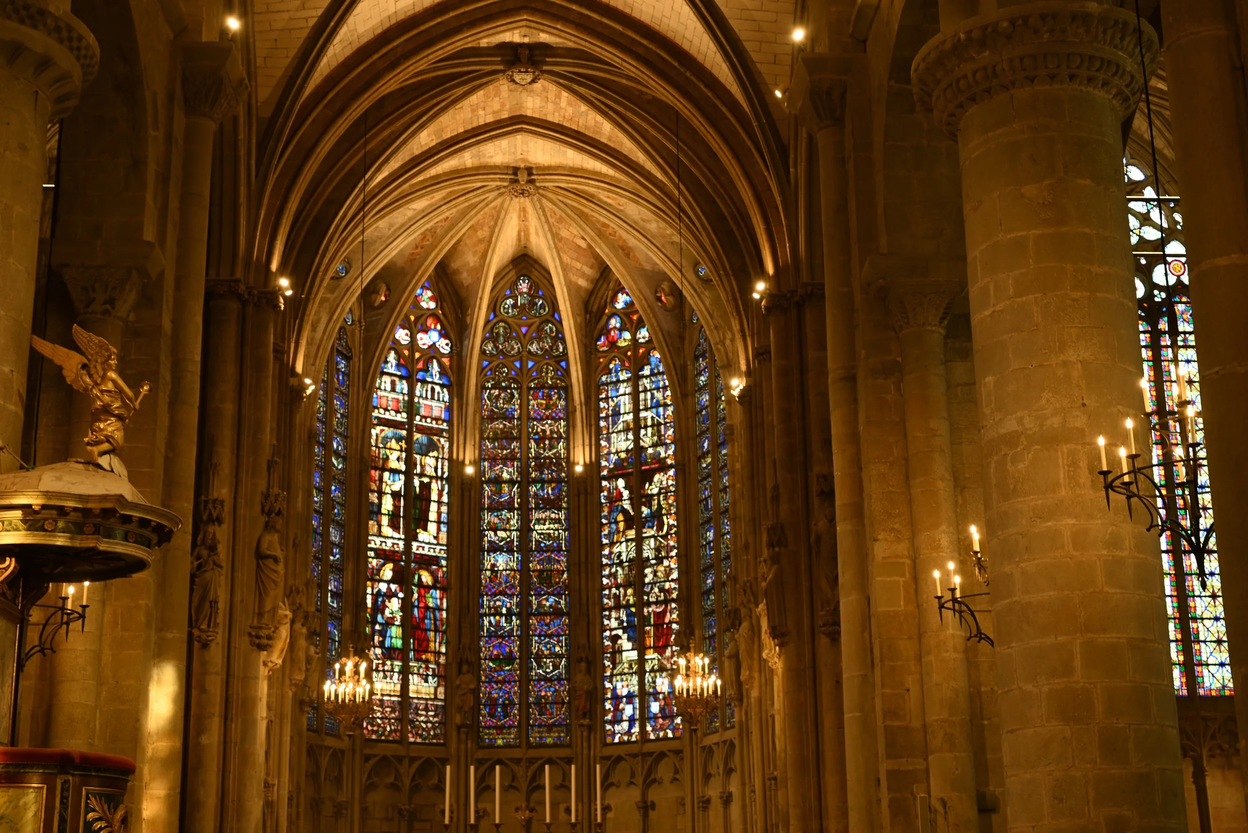 Viollet-le-Duc también intervino en la Basílica de Saint-Nazaire y Saint-Celse. Aunque no la restauró de forma tan profunda o creativa como las murallas, fue más respetuoso y se trató de un trabajo de consolidación y aseguramiento de la permanencia del templo en el tiempo.