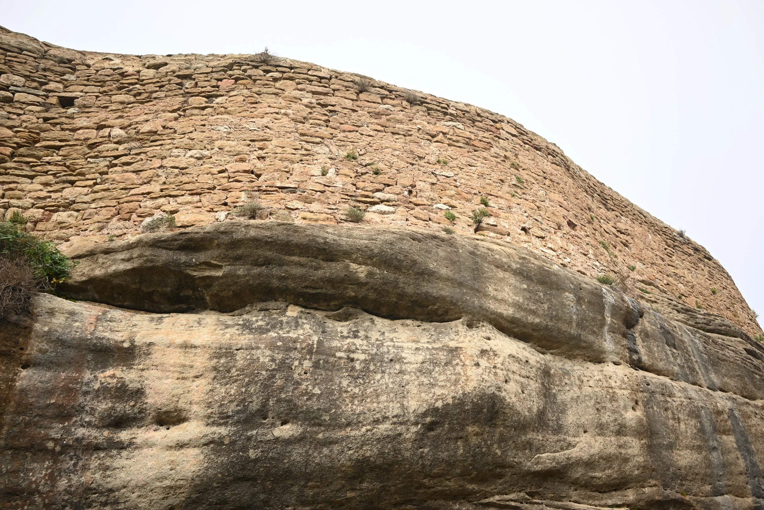 En algunas secciones, se observa el uso de opus spicatum (disposición de piedras en forma de espiga), técnica común en construcciones del siglo X . La torre circular en el sector noroccidental, con un diámetro exterior de aproximadamente 6,5 metros, se alza directamente sobre la roca y se cree que tenía una altura de unos 9 metros, dividida en dos plantas cubiertas con bóvedas de piedra .